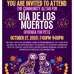Hispanic Heritage Month — Great Plains SPCA invites the community to honor cherished animal companions during a weeklong Día de los Muertos Pet Remembrance observance, beginning Monday, October 27, 7–9 PM, at Great Plains SPCA’s Merriam Campus. In partnership with La Mega KC, Consulado de Mexico in Kansas City, MO, Dos Tequilas KC, Hispanic Chamber […]