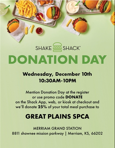 we’ll donate 25% of your total meal purchase to GREAT PLAINS SPCA.
